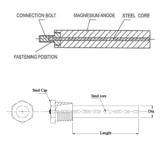 • Immersion Anode Rod Cast And Extruded 9.5 Inch Magnesium Alloy Immersion Water Heater Rod
